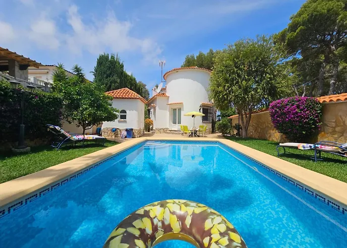 Vila Villa Comas je umístěna 3 km od Mořská jeskyně Cova Tallada, je 3-ložnicové ubytování s vnitřním dvorkem. Ubytování zahrnuje balkón, osobní sejf a šatnu v pokojích.